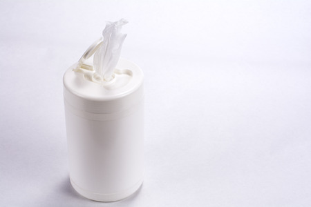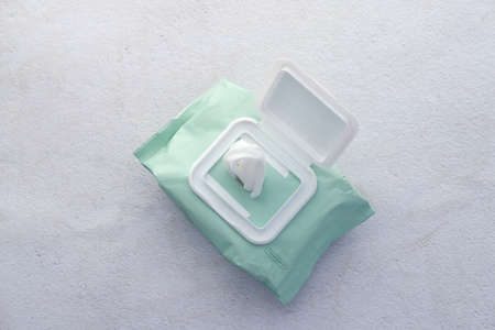 White wet tissue container on gray background