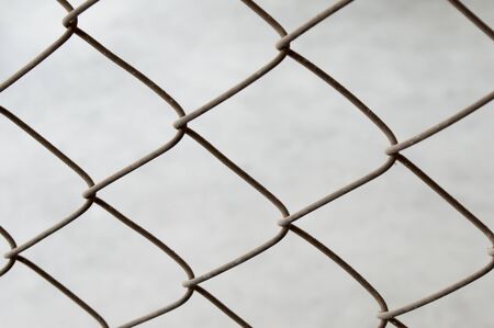 Rusty Chain Link Fence of steel netting on blur background. wired metal fence in vintage tone.