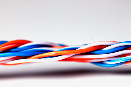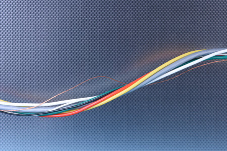 Colorful telephone cable communication technology lines closeup
