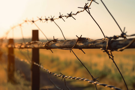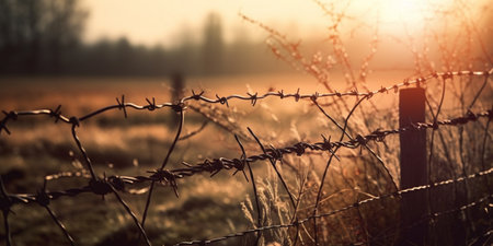 With blurry barbed wire rod fence. Created with Generative AI technology