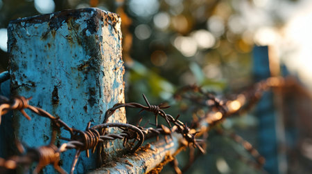 Gritty Barbed wire cinematic. Iron crime war. Generate Ai