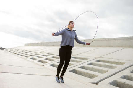Sport fit woman jumping rope outdoors. healthy lifestyle