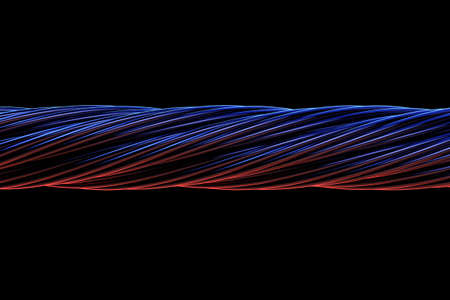 Steel Wire Rope Cable in Red and Blue Light extreme closeup on a black background. 3d Rendering