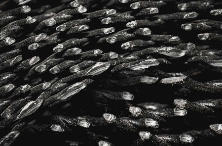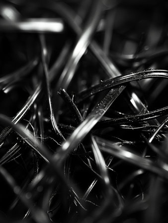 Abstract pattern of metal wires, tangled and overlapping, artistic black and white photo