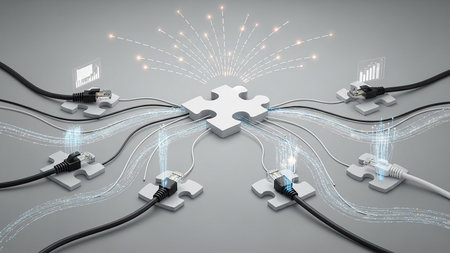 An abstract image of interconnecting puzzle pieces symbolizing the seamless integration of data from a variety of sources