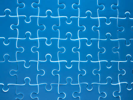 A set of puzzles, the process of collecting in a large pattern. Teamwork and problem solving, concept. Blue mosaic on blue