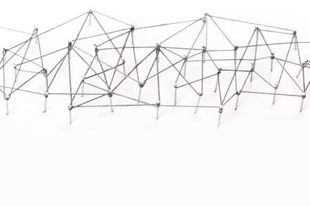 Background. Abstract concept (idea) of network, social media, internet, teamwork, communication abstract. Nails linked together by threads. Isolated. Entities connected.