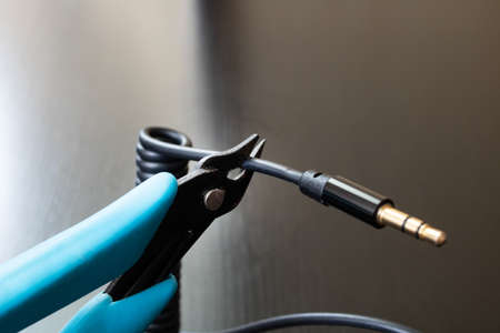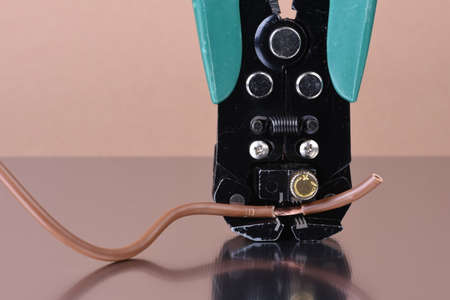 Electrical equipment. Electricity cable and crimper. Background and texture