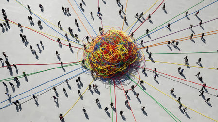Network connecting colorful pawns representing people interacting