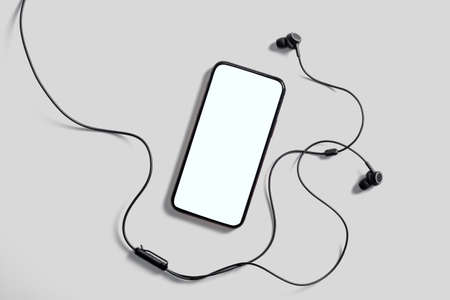 Trendy Mobile Phone Application Mockup with Headphones