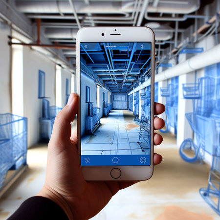 An AI generated illustration of a man using a smartphone to view a 3D visualization of a building