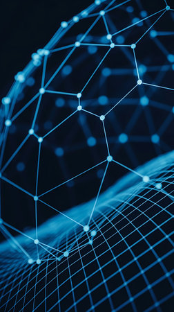 3D render of a network communications data technology background with low poly plexus design