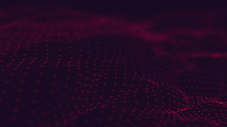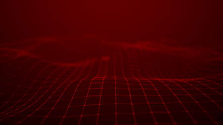 Wave 3d. Wave of particles. Abstract Red Geometric Background. Big data visualization. Data technology abstract futuristic illustration. 3d rendering.