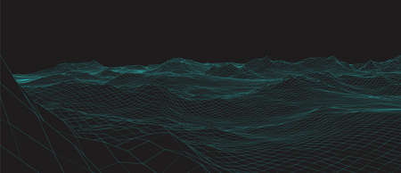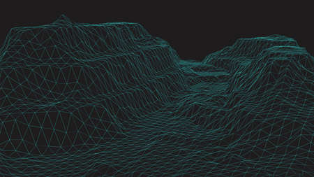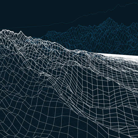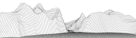 Landscape design of mountains. Wireframe landscape 3d. Vector illustration.