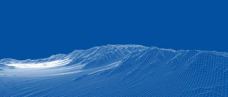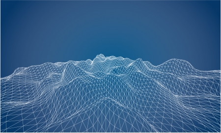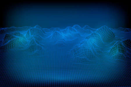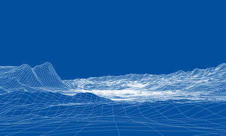 3D Wireframe Landscape. Blue Gradient Background. Vector