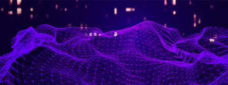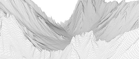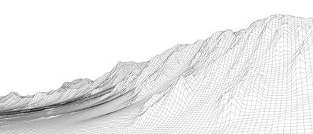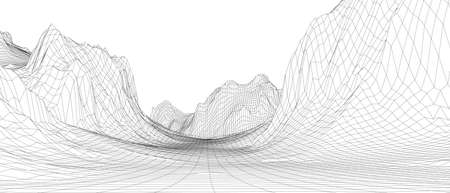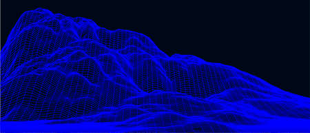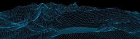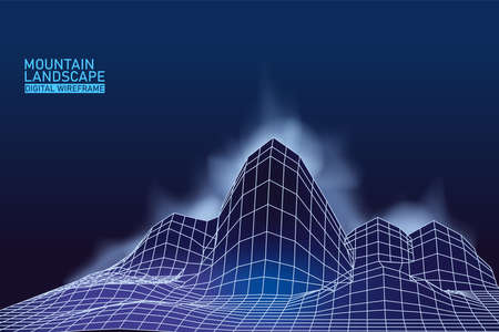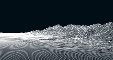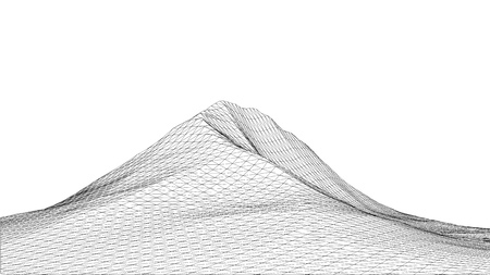 Digital landscape mountaine abstract wireframe. 3D wireframe grid mesh illustration concept. Vector background