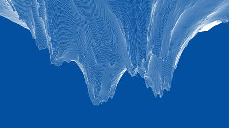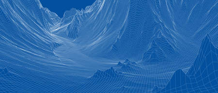 Abstract 3d wire-frame landscape. Blueprint style. Vector rendering from 3D model. Geology Terrain