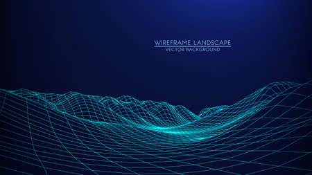 Abstract vector wireframe landscape background. Cyberspace grid. 3d technology wireframe vector illustration. Digital wireframe landscape.