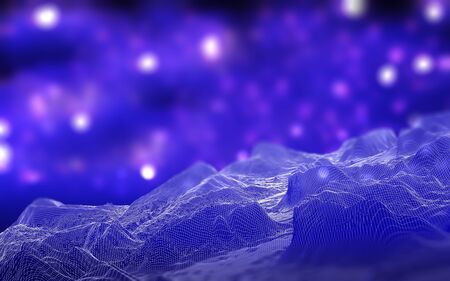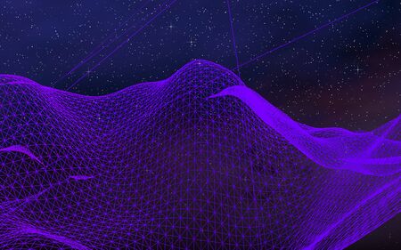 Abstract ultraviolet landscape on a dark background. Purple cyberspace grid. hi tech network. Outer space. Violet starry outer space texture. 3D illustration
