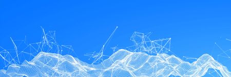 3d Abstract Background Network concept . Future background Technology illustration. 3d landscape. Big data. Wireframe Landscape with connections dots and lines on dark background.