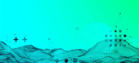 Abstract landscape background. Cyberspace grid. 3d technology illustration.