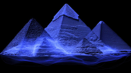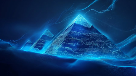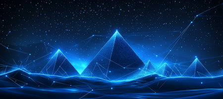 Abstract Giza Pyramids With Digital Connection Lines On A Blue Night Background, Giza, Egypt