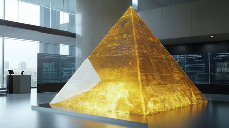 Sci-fi scene of futuristic matrix pyramid. By generative Ai