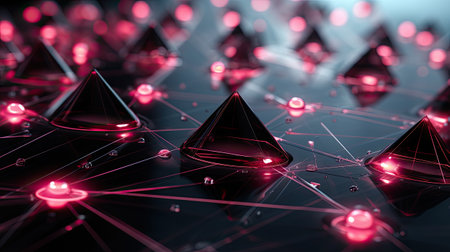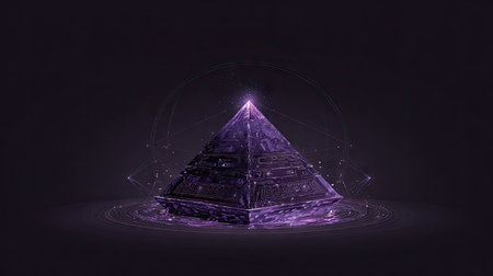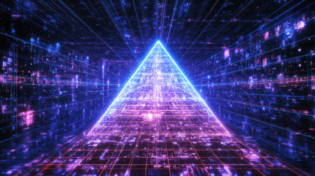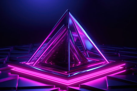 A mesmerizing 3D neon pyramid symbolizes advanced data analysis and technology, making it perfect for digital modeling and visualization in todays fastevolving digital landscape