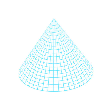 Pyramid grid figure low poly neon geometric shape, wireframe perspective. Vector geometry figure hologram, isolated polygonal mathematics form in 3D style