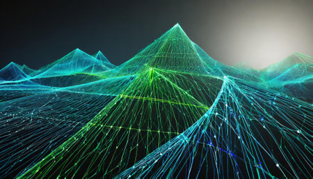 A stunning digital artwork showcasing a geometric crystal structure with neon lines, creating a visually captivating and modern aesthetic.