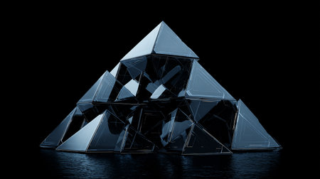 3d render of a pyramid on a black background with reflection.