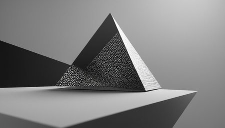 A small pyramid shaped object sitting on a surface, AI