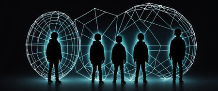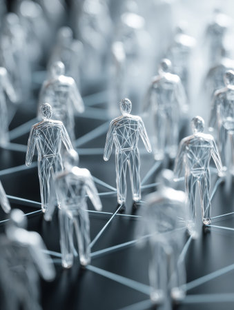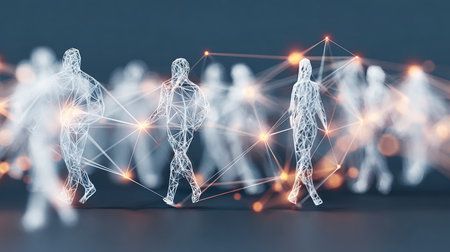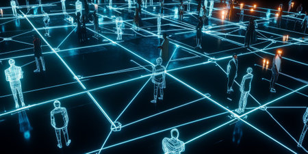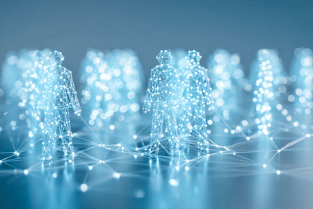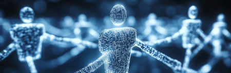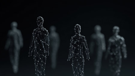 Digital Network of Interconnected Human Figures, Representing Futuristic Technology and Innovation.