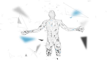 Abstract geometrical plexus man. Plexus connection backdrop. 3D Rendering.
