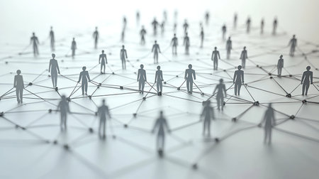This visual representation illustrates the interconnectedness of individuals within a social network, highlighting how each person contributes to a larger community. The figures are positioned among lines denoting relationships, emphasizing connection and interaction.