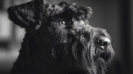 Professional Black and White Portrait of Kerry Blue Terrier Dog