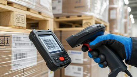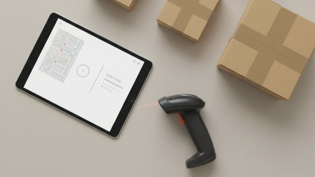 A detailed 4k ai scene featuring a barcode scanner tablet and cardboard boxes arranged on a clean workspace representing modern inventory management and logistics operations 4K AI