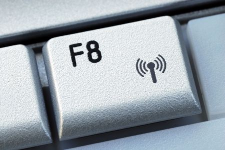 Macro closeup on WiFi repeater WPS button. The device is in electrical socket on the wall. It help to extend wireless network in home or office.