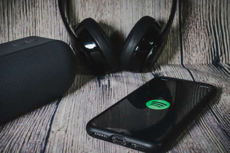Riga, Latvia - March 25, 2018: Music streaming service website on the latest generation iPhone X.