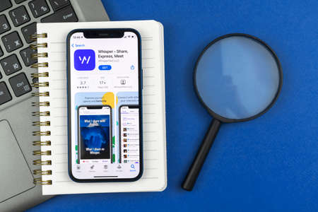 Kharkov, Ukraine - May 28, 2021: Whisper application on the screen of the mobile phone
