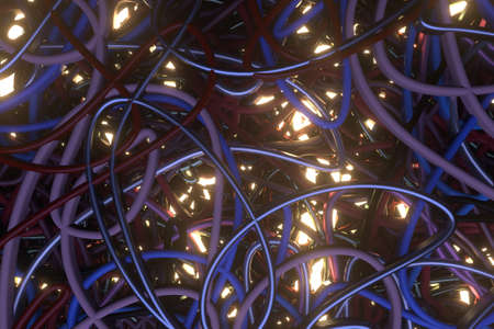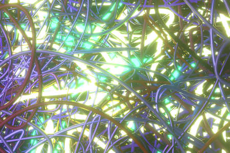 Abstract neon grow lights messy colorful string, for web page, graphic design, texture, background. 3D render.