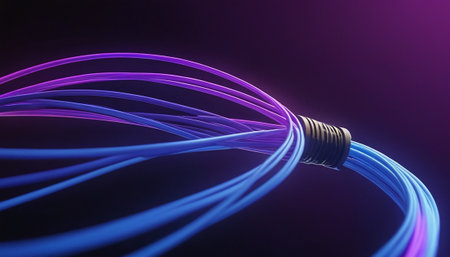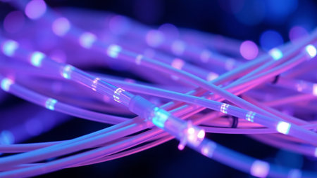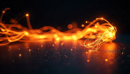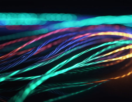 Abstract fiber optic cable wire with bokeh lights communication and technology background