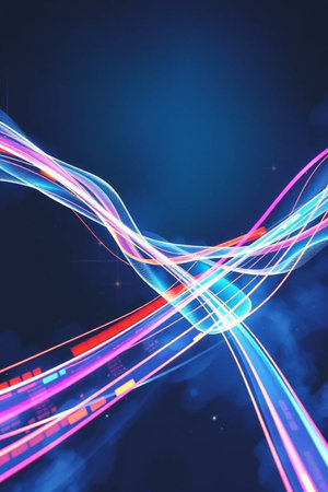 this abstract image features colorful neon light trails against a dark backdrop, creating a modern look