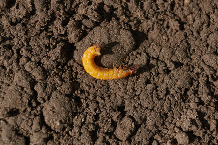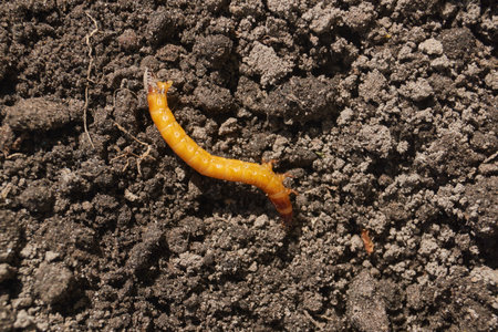 Wireworm on a garden plot. Wireworms are the larvae of all click beetles.