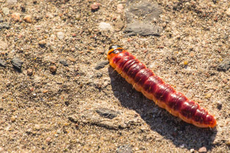 A large orange larva of a goat moth (Cossus cossus), isolated on a white background