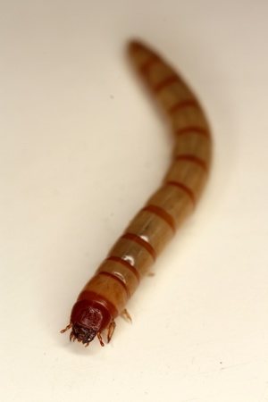Single mealworm isolated on a white background