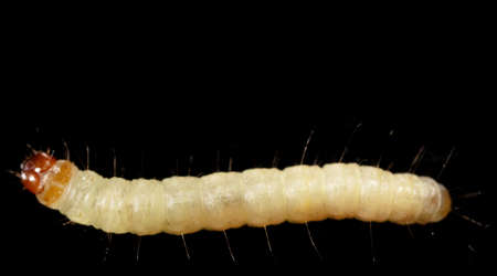 Close up of a mealworm, an alternative food ingredient for meat, on white background