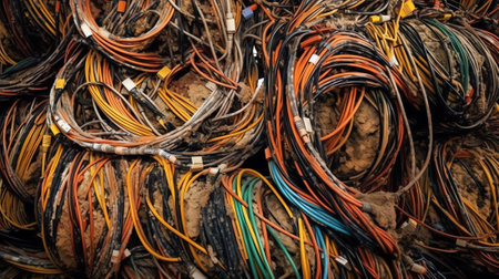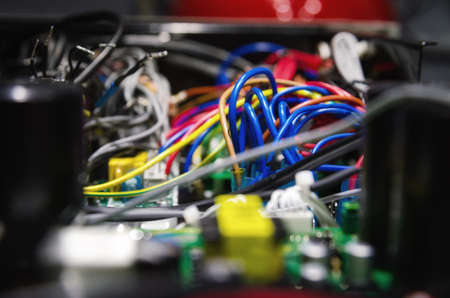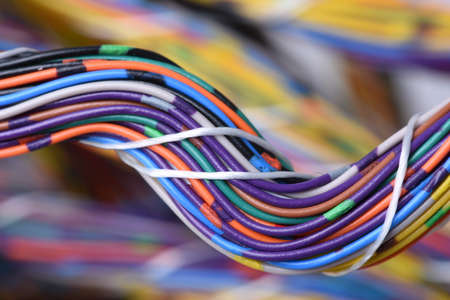 Electric cable close-up. Electrical wires in various colors and shapes.