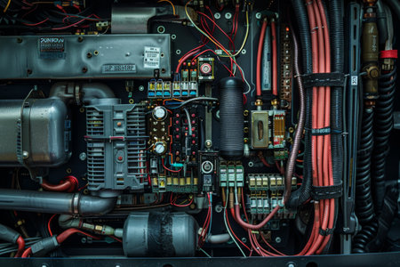 Complex circuitry and wires intertwine within the control panel, revealing the heart of a machine. Each component serves a crucial role in managing the electrical flow and overall functionality.