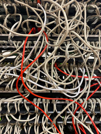 Internet cables rack not arranged in data center